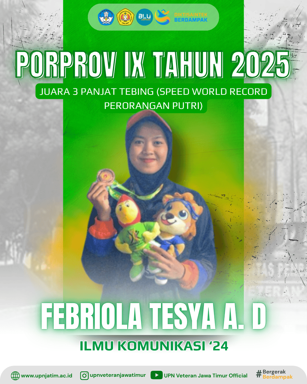 Prestasi Febriola Tesya Ananta Dewi semakin lengkap dengan menorehkan medali perunggu pada nomor Speed Perorangan Putri di PORPROV IX Jawa...