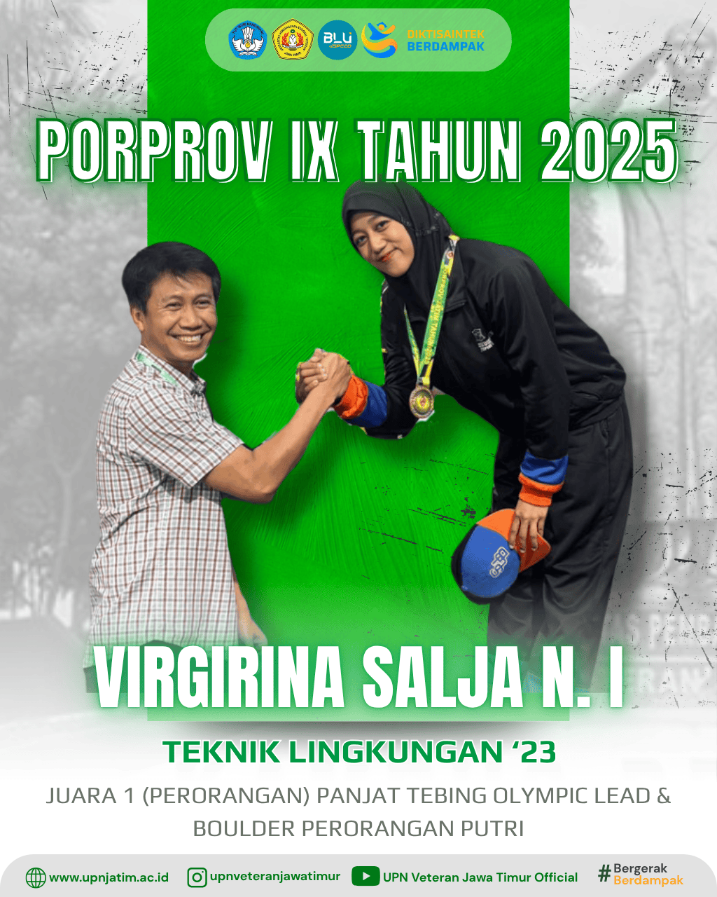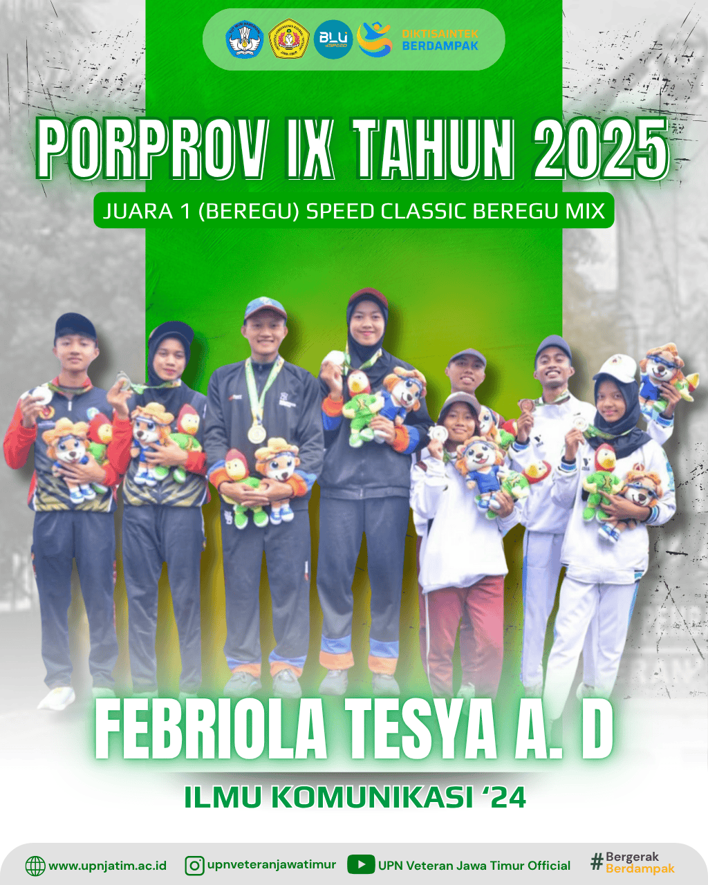 Surabaya – Mahasiswa UPN “Veteran” Jawa Timur, Aulia Shanda, berhasil meraih Juara 1 pada Madura Sport Championship 2025, kategori Tanding...