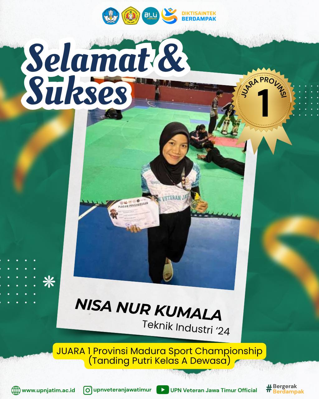 Surabaya – Mahasiswa UPN “Veteran” Jawa Timur, Nisa Nur Kumala, berhasil meraih Juara 1 pada Madura Sport Championship 2025, kategori...