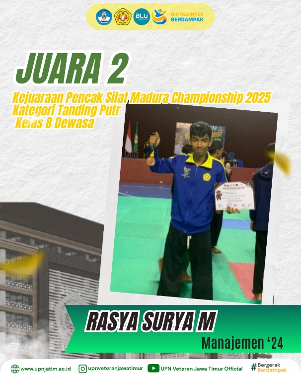 Surabaya - Mahasiswa UPN “Veteran” Jawa Timur, Rasya Surya Megantara dari Program Studi Manajemen, berhasil meraih Juara 2 pada Kejuaraan...