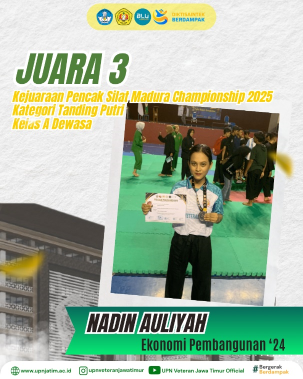 Surabaya – Mahasiswa UPN “Veteran” Jawa Timur, Nadin Auliyah dari Program Studi Ekonomi Pembangunan, berhasil meraih Juara 3 pada Kejuaraan...