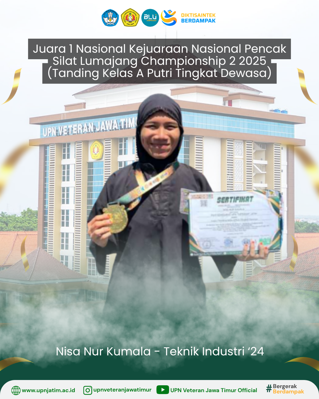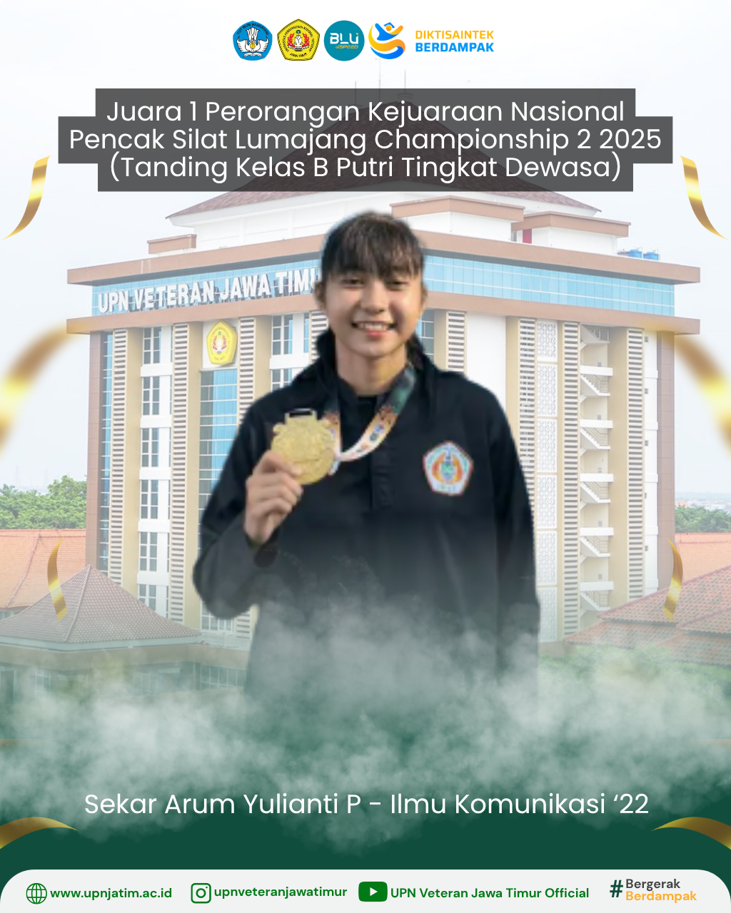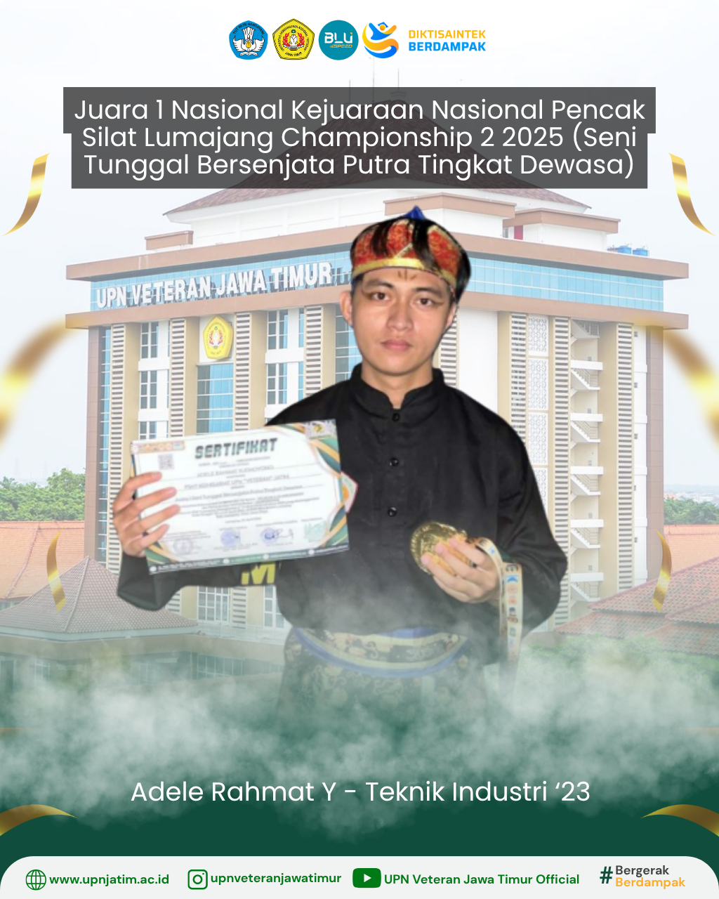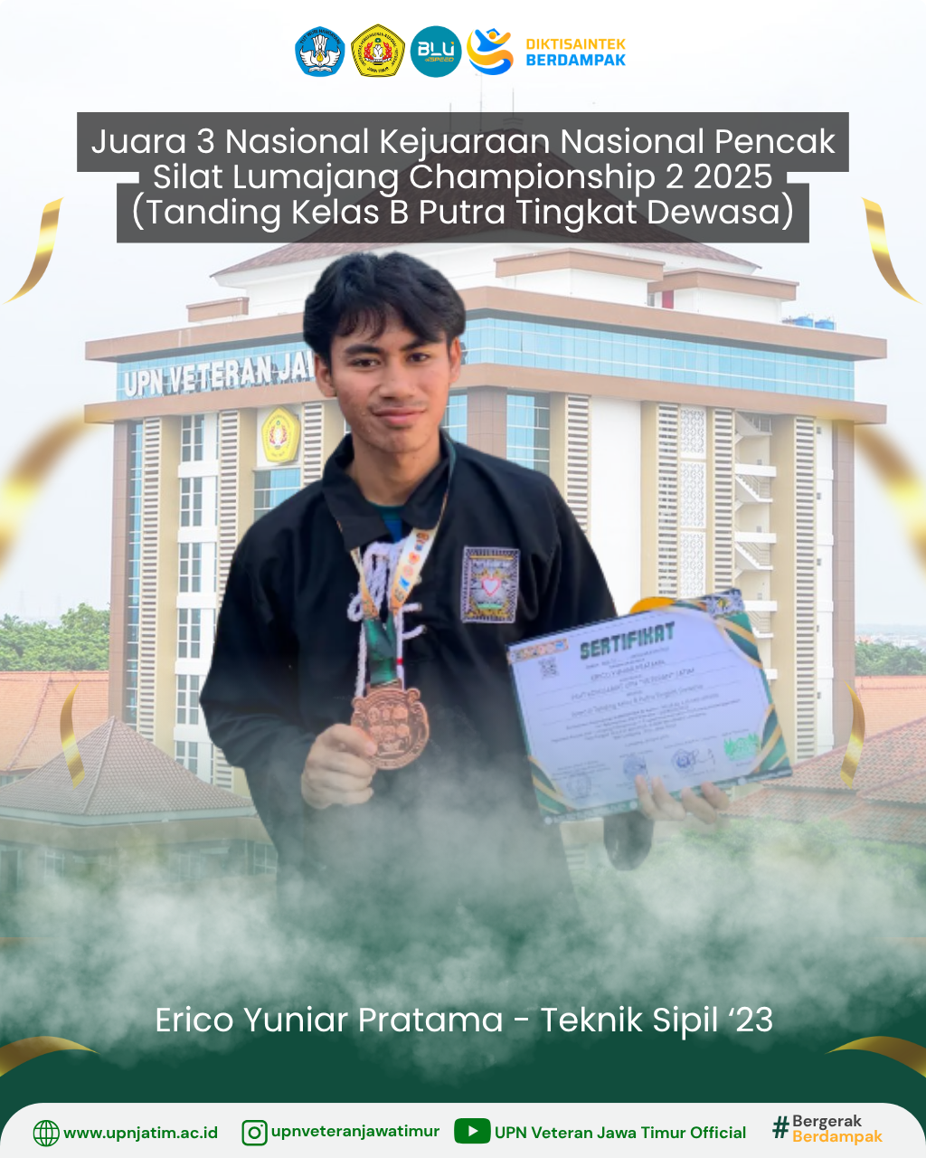 Surabaya – Mahasiswa UPN “Veteran” Jawa Timur, Erico Yuniar Pratama, berhasil meraih Juara 3 pada Kejuaraan Nasional Pencak Silat Lumajang...